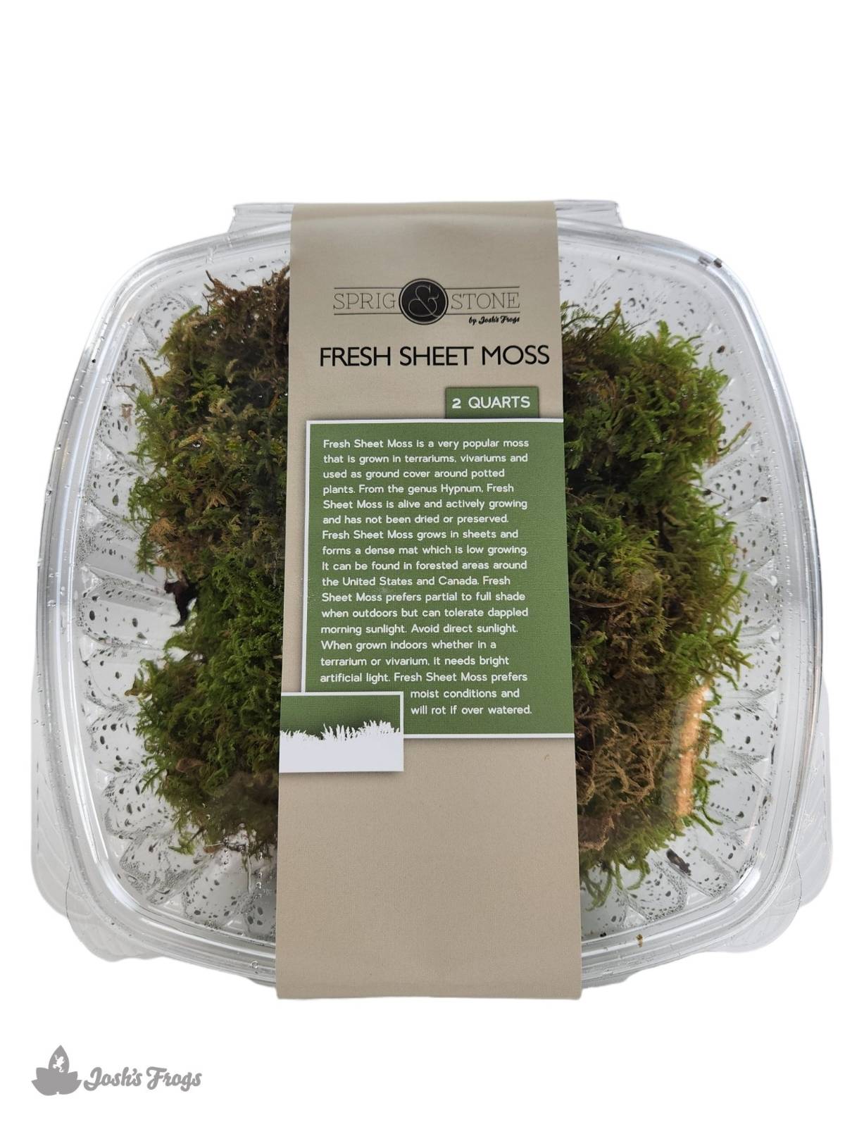 Live moss is the perfect way to bring a piece of nature into your home. Under proper lighting and humidity, the live moss will green up and begin to spread, eventually creating a green jungle oasis in your vivarium that your reptile or amphibian pets will love. Moss also looks great in fairy gardens, to add extra humidity to potted plants, or even as an accent to semi-aquatic gardens. The possibilities are endless! Live Moss is cultivated in the Carolinas and is retrieved from wild sources. As a result, live moss may occasionally produce wild mushrooms or invertebrates. As good practice, Josh’s Frogs recommends washing all plants thoroughly removing as much soil as possible with dechlorinated water before placing them in their final home. Species Name : Hypnum curvifolium Common name(s): Sheet Moss, Curved-leaved hypnum moss, Carpet moss Defining Characteristics: One of the most popular carpeting mosses available Deep evergreen to light green grassy foliage Hardy species that bounces back easily from periods of drought Temperature requirement: 60-85°F Humidity: Humid (70-100%) Watering frequency: Water when the soil begins to dry out. Consistent, but infrequent, watering needs Lighting: Bright, indirect light Growth rate: Moderate Height: 1-2 inches Origin: North America, Eastern United States Regional locality: Grows in a variety of woodland habitats, especially on decaying trees in moist areas. USDA Hardiness Zone: 8-11 Suggested Vivarium/ Animal Terrarium Use: Aquatic Frogs & Toads Lizards & turtles Aquatic Set-ups Temperate Frogs & Toads ✔ Lizards & turtles ✔ Snakes ✔ Geckos ✔ Temperate Vivariums ✔ Tropical Frogs & Toads ✔ Lizards & turtles ✔ Snakes ✔ Geckos ✔ Tropical Vivariums ✔ Desert Toads Lizards and tortoises Geckos Desert Vivariums Care Notes: Regular misting may help this species maintain its green color between waterings. Shipping Notes: Live moss products ship in a 1-2 quart sealed plastic container